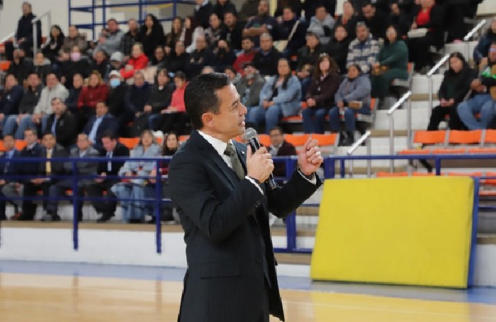 Durante su mensaje de bienvenida, el rector de la UACJ, doctor Daniel Alberto Constandse Cortez, tomó el micrófono, caminó al centro de la duela y, dejando de lado el protocolo, habló desde la experiencia y la cercanía.