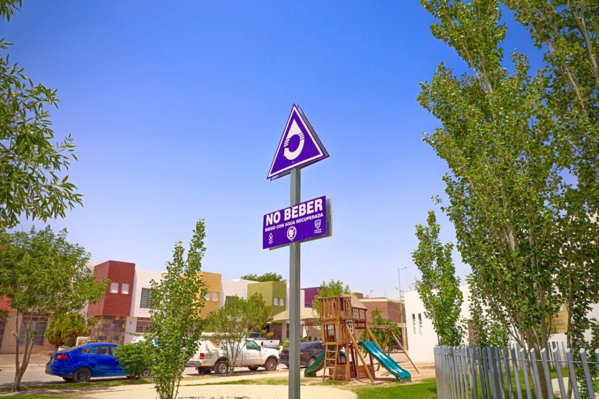 La instalación de la línea morada para llevar agua tratada de forma gratuita, ha generado un impacto positivo en la recuperación y mantenimiento de áreas verdes en distintos fraccionamientos de Ciudad Juárez. Tal es el caso del fraccionamiento Bonanza, ubicado en la zona de Valle del Sol, el cual fue recientemente incorporado a este programa. En esta área se tendieron 598 metros de tubería de PVC, conectando 13 parques al sistema de agua tratada. También se realizaron trabajos de identificación de tomas de agua potable y de un sistema de riego por goteo, instalación de señalización y reparación de banquetas.