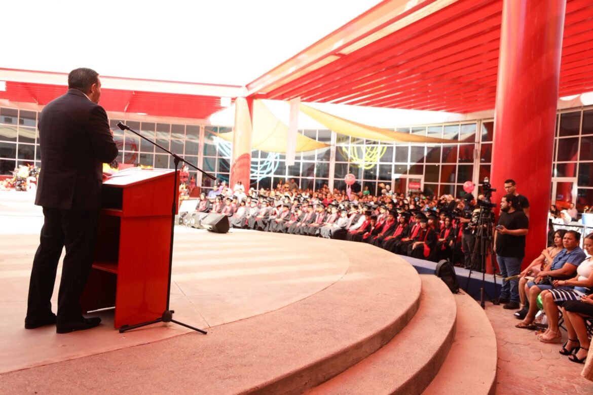 Asimismo, felicitó al alumnado y los invitó a que escuchen a sus mamás y papás, así como a sus profesores a lo largo de su preparación académica. Además, les pidió cuidarse y alejarse de todo lo dañino que se les pueda presentar.