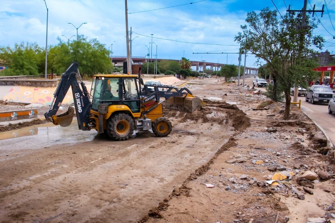Para evitar afectaciones a la ciudadanía, la Junta de Agua y Saneamiento de Juárez realiza trabajos para retirar basura y desechos arrastrados hasta el bulevar Norzagaray por las lluvias caídas en la ciudad durante la noche del martes y madrugada del miércoles.