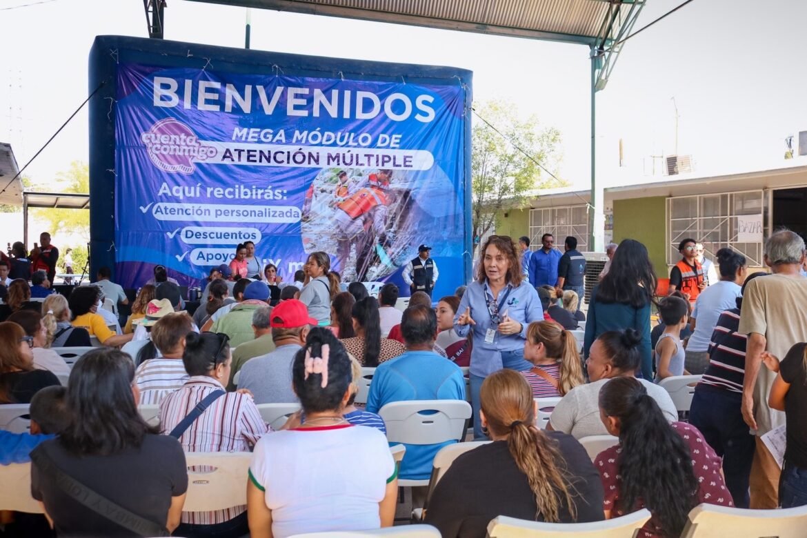 Con despensas, material de construcción, artículos de limpieza y descuentos en su recibo del agua, la Junta de Agua y Saneamiento de Juárez mostró una vez más su compromiso con la ciudadanía en el Mega Módulo de Atención Múltiple que se instaló este martes en la escuela primaria Centauro del Norte, en la colonia Fronteriza Baja.