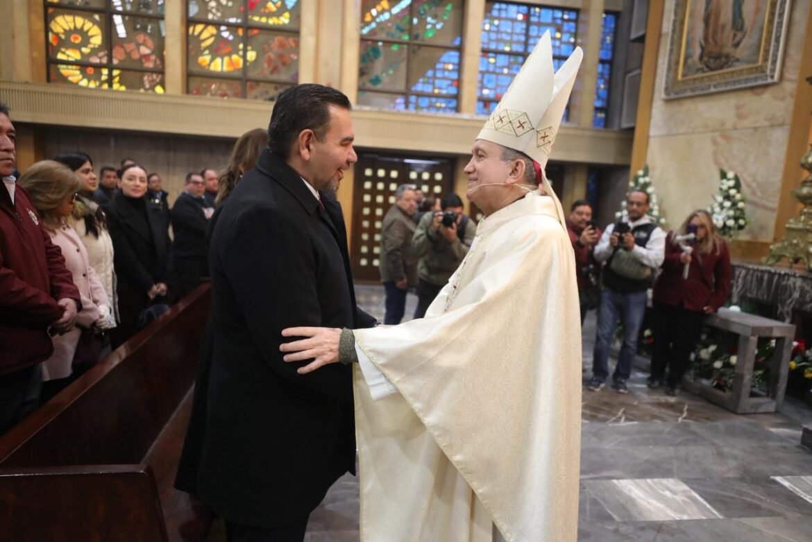 El Presidente Municipal, Cruz Pérez Cuéllar, en compañía de su esposa Rubí Enríquez, acudió a la misa celebrada en la Catedral de Nuestra Señora de Guadalupe, con motivo de la celebración del 366 aniversario de la Fundación de Ciudad Juárez.