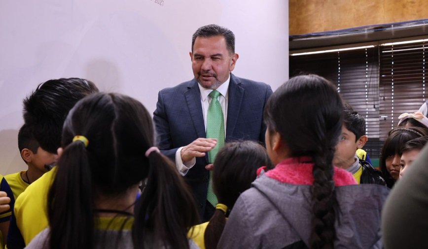Con el objetivo de que niñas y niños conozcan qué es un Cabildo, quiénes lo integran y qué decisiones se toman en este órgano colegiado, el Presidente Municipal, Cruz Pérez Cuéllar, recibió a estudiantes de cuarto grado, turno vespertino, de la Escuela Primaria América.