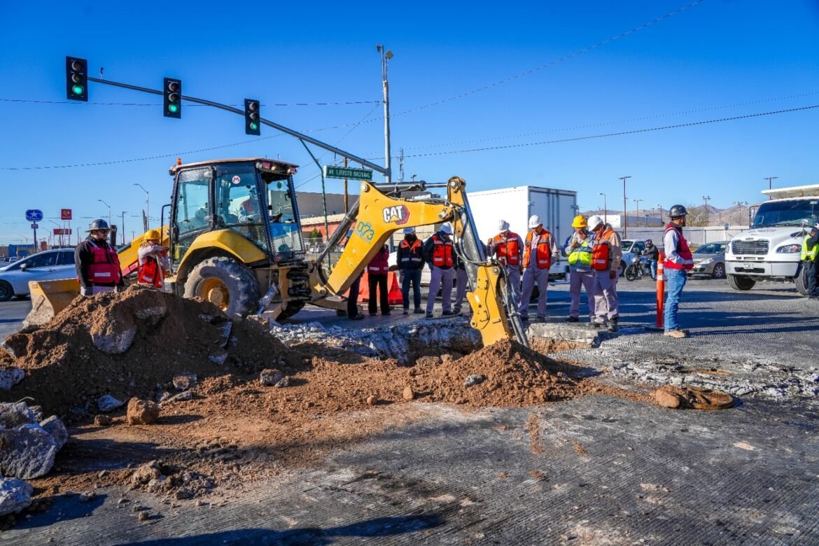 La Junta de Agua y Saneamiento de Juárez, trabaja en la reparación de un hundimiento de grandes dimensiones y profundidad, registrado sobre la Avenida División del Norte en el cruce …