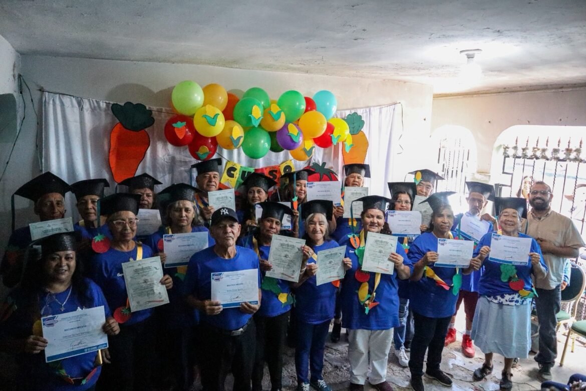 Más de 30 adultos mayores que conforman el Consejo de Adultos Mayores “Solidaridad”, celebraron la culminación de un taller intensivo de huertos urbanos en la colonia Lucio Blanco, durante la cual se les otorgó una constancia de certificación.