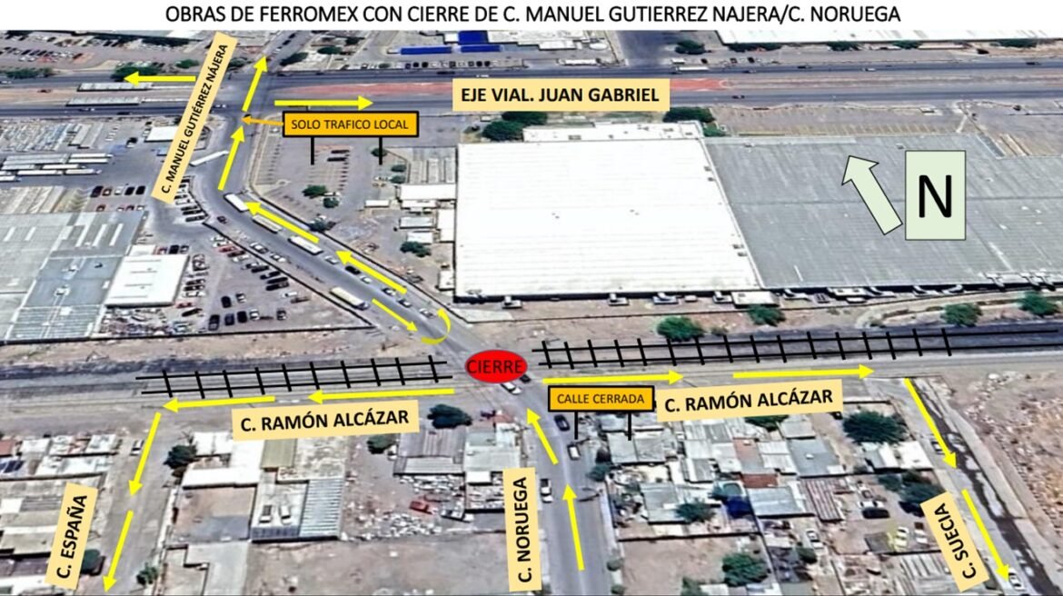 Cierre temporal de la calle Manuel Gutiérrez Nájera por obras de mantenimiento de Ferromex