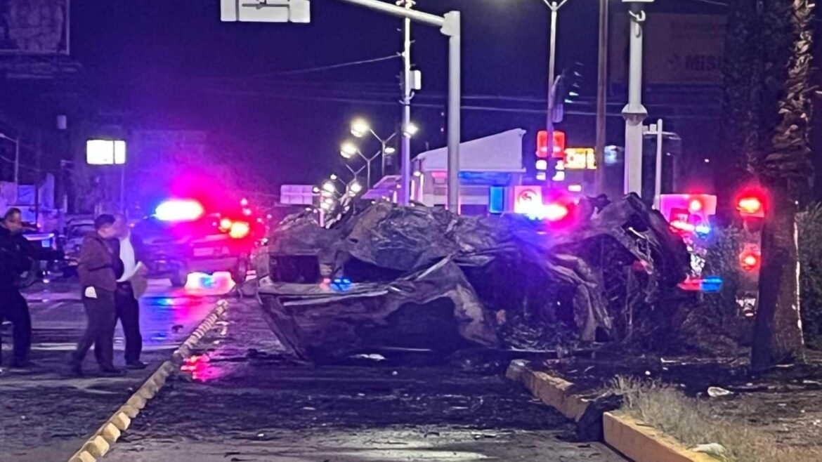 El choque ocurrió durante la madrugada del domingo en el cruce de la avenida Tecnológico y la calle Centeno, donde ambos vehículos involucrados quedaron completamente destruidos y parte del camellón se incendió.