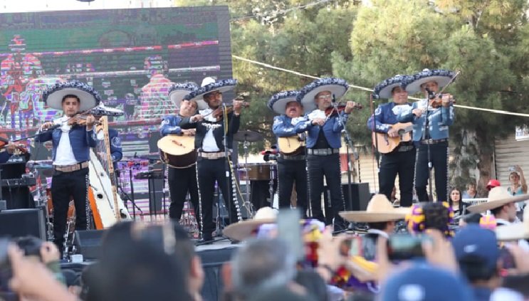 La parte artística inició con la presentación del mariachi “Así es México”, acompañado de un colorido ballet folclórico proporcionado por el Instituto para la Cultura del Municipio (IPACULT) y continuó con la transmisión en vivo de la pelea de box más esperada del día, proyectada en dos pantallas instaladas sobre la avenida Juárez.