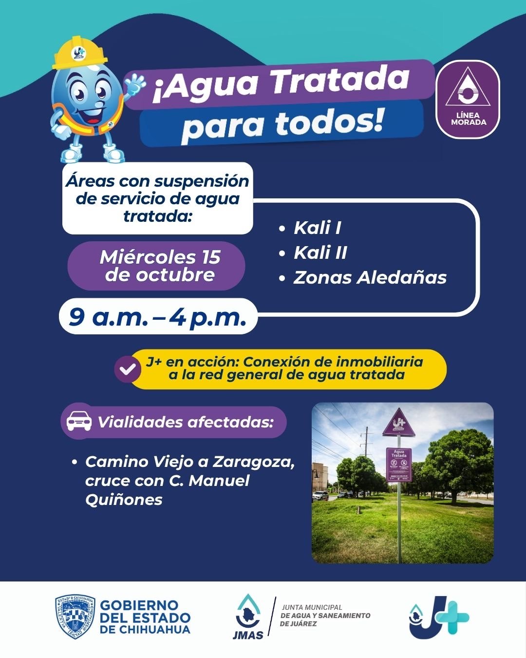 Este miércoles 15 de octubre, la Junta de Agua y Saneamiento de Juárez conectará un fraccionamiento a la red general de agua tratada.