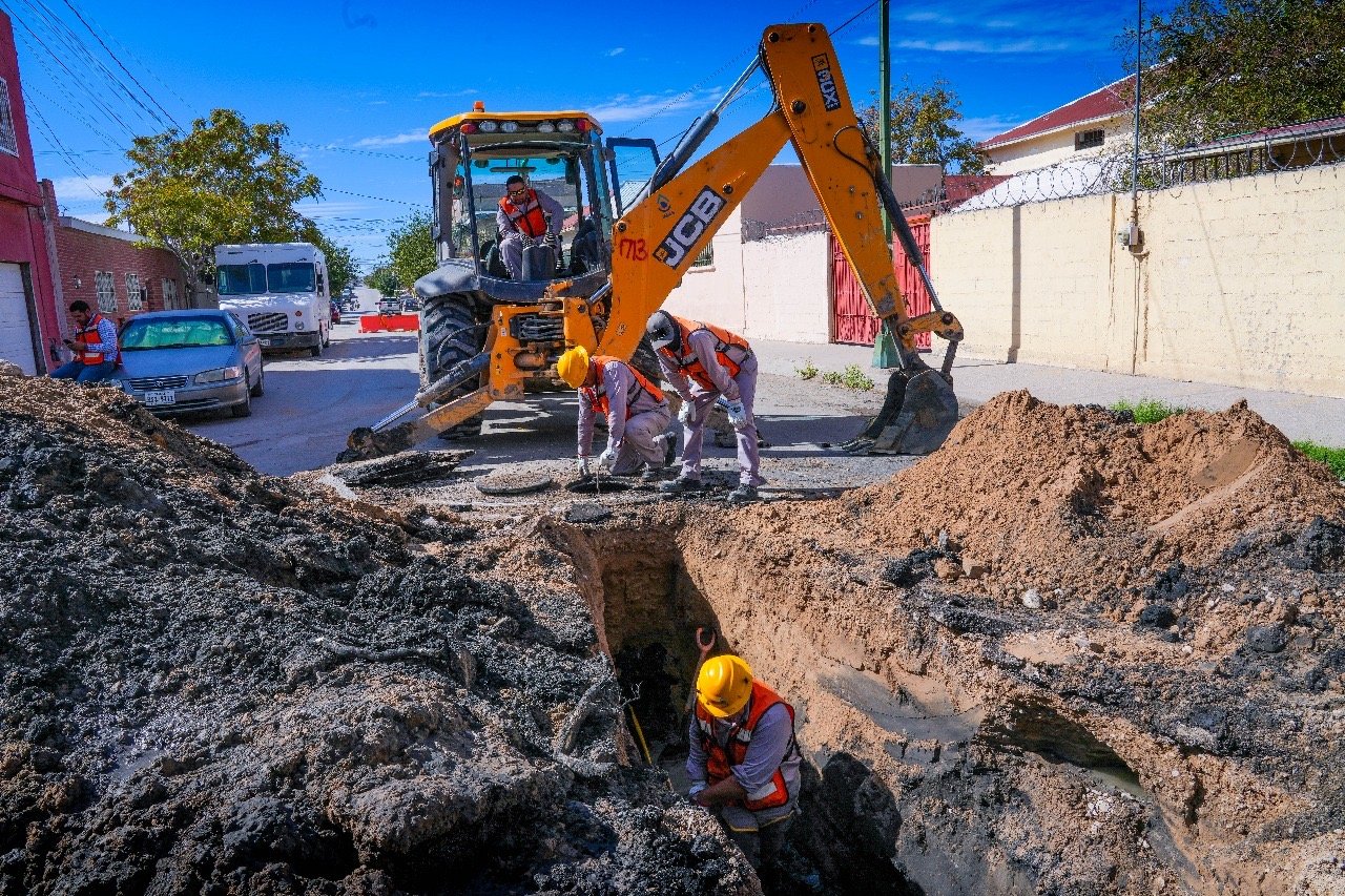 Cuadrillas del departamento de Alcantarillado laboraron por más de seis horas en el cruce de las calles Oro y María Martínez, donde fue necesaria una excavación a dos metros de profundidad, utilizando maquinaria especializada, como una retroexcavadora, un camión de inyección y succión (Vactor) y un camión de volteo, informó el ingeniero Iván Gaytán, coordinador del distrito 3 de Alcantarillado.
