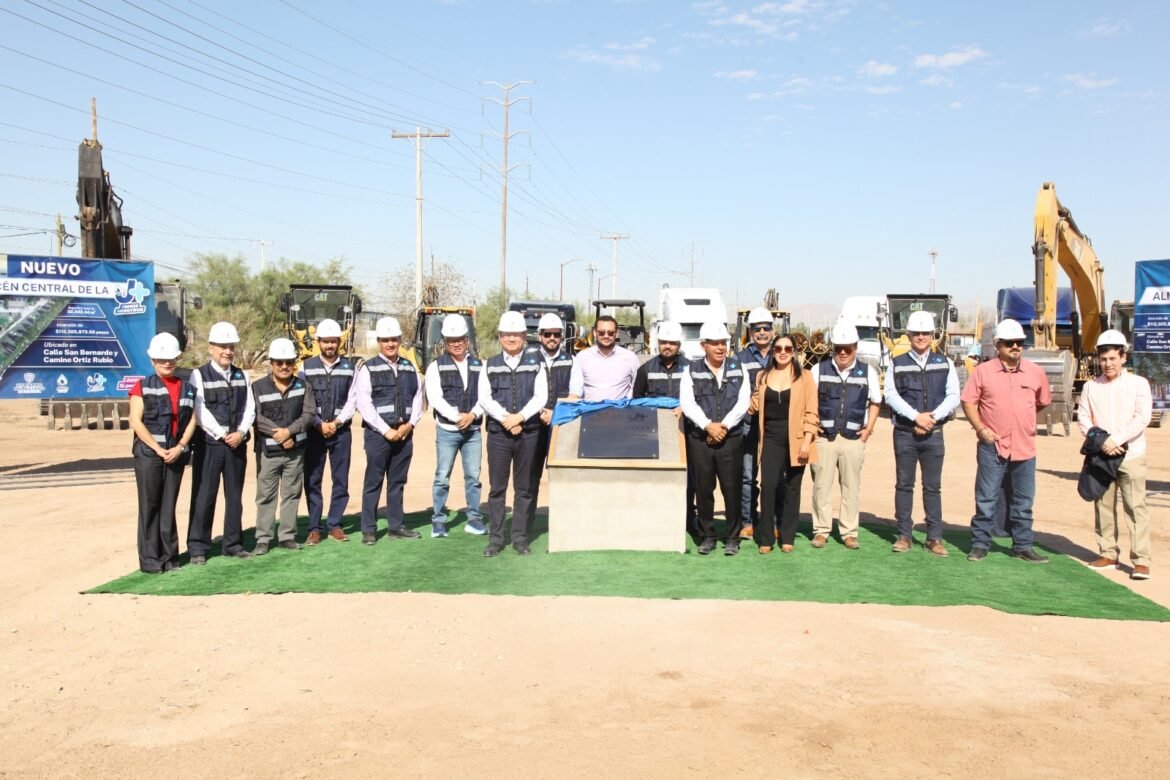 Sergio Nevárez Rodríguez, director ejecutivo de la J+, presidió este jueves el acto de develación de la primera piedra del nuevo Almacén Central que se construirá a un costado de la Planta de Tratamiento de Aguas Residuales Norte.
