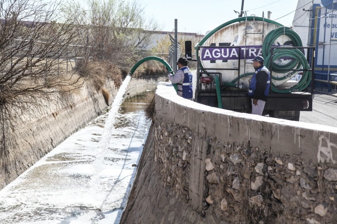 Al respecto, Adán Estrada, del Departamento de Pipas de Agua Tratada, explicó que “en este punto estamos inyectando agua para darle más fluidez al cauce. Durante los próximos días seguiremos trabajando en este punto para darle más flujo al agua en la acequia. La semana pasada estuvimos interviniendo en la Baudelio Pelayo, en el área de Campestre Senecú. En los próximos días nos estaremos recorriendo hacia el lado oriente de la ciudad y terminaremos a la altura de la Gómez Morín”.