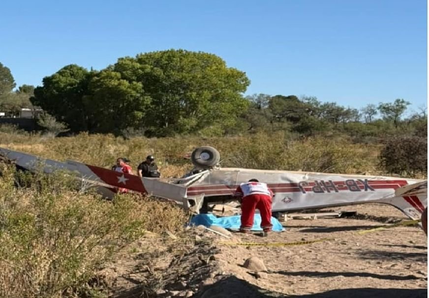 La caída de una avioneta este sábado en el tramo carretero Santa Isabel–Ánahuac, Chihuahua, dejó como saldo la muerte de Armando Schmitt (piloto) y Jesús Andrés Leyva (copiloto), según reportes oficiales.