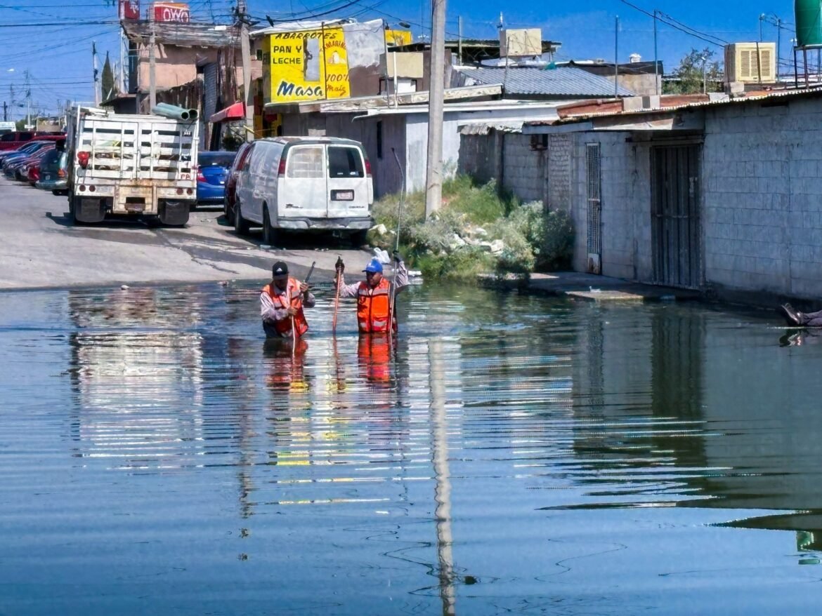 Para poder drenar el líquido, el personal de la Junta de Agua y Saneamiento entró al agua para ubicar la red de drenaje sanitario, el cual fue sondeado con un camión vactor para eliminar la obstrucción y permitir el flujo del agua de lluvia.