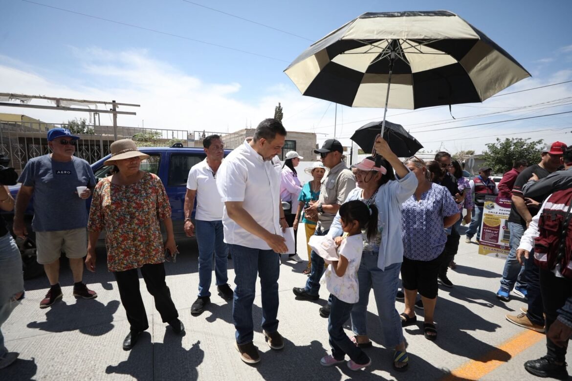 A pesar del intenso calor, los vecinos se congregaron para recibir al alcalde a fin de agradecerle los trabajos y ofrecerle un vaso de agua fresca.