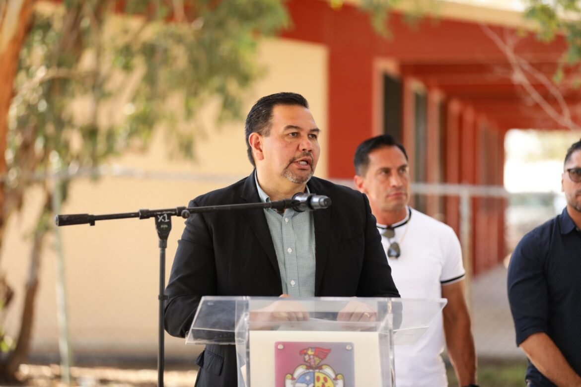 “Me da mucho gusto estar aquí, saludar a los alumnos, alumnas, maestros, maestras y padres de familia y entregar está obra”, expresó el alcalde.