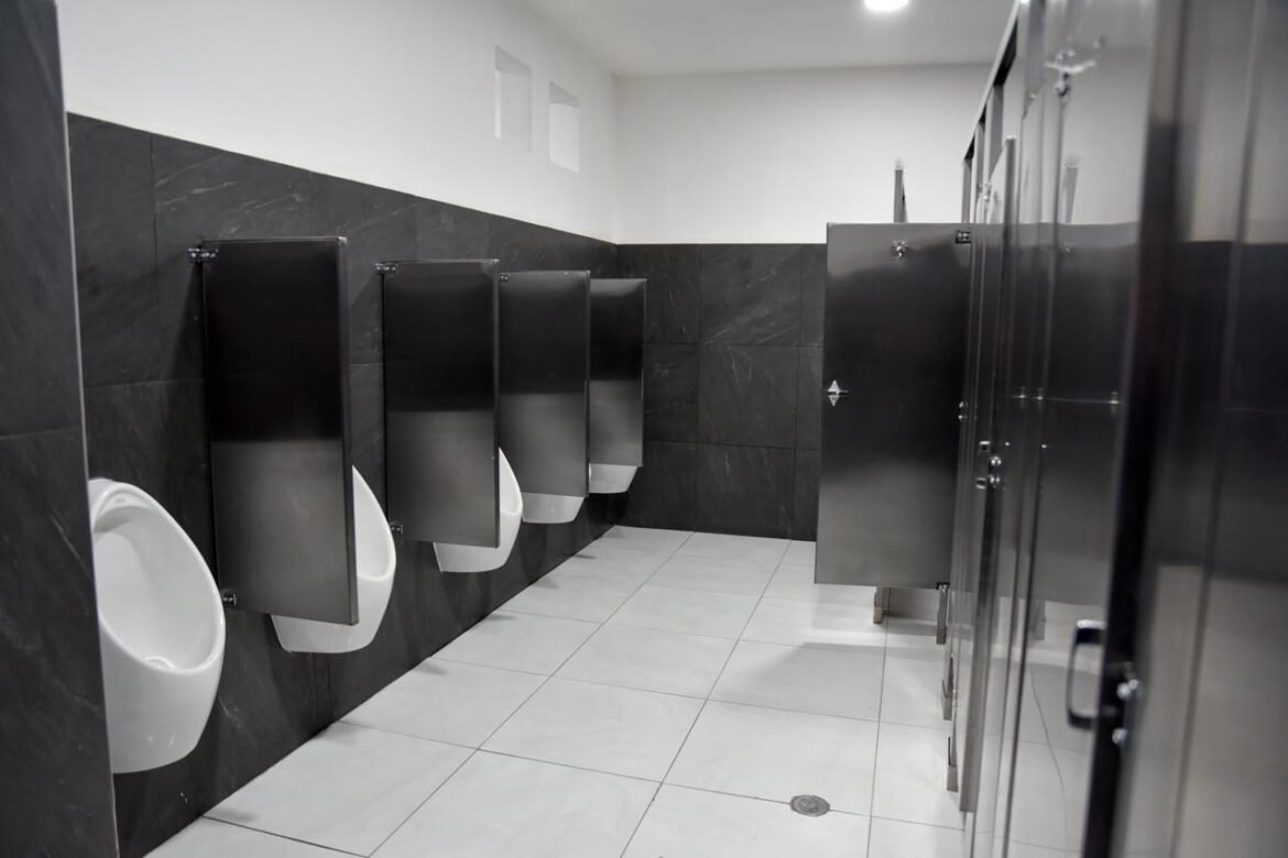 De igual manera, se colocaron 353 metros cuadrados de recubrimiento cerámico en muros, trabajos que se realizaron tanto en los sanitarios destinados a mujeres como en los de hombres, con el objetivo de brindar condiciones adecuadas para toda la población usuaria.