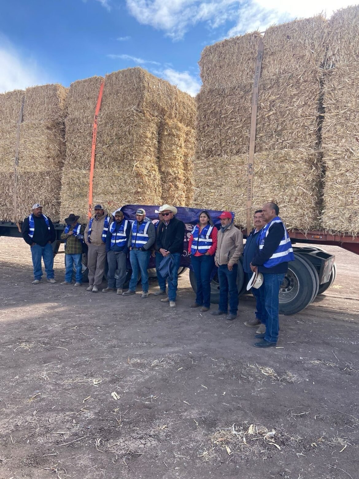 La entrega consistió en un total de 465 pacas de alimento para ganado, que beneficiarán a 31 productores del municipio de Praxedis G. Guerrero.