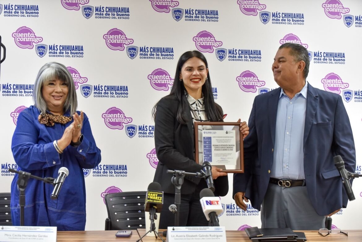 Durante la firma del convenio se entregó un reconocimiento al Programa de Intervención Comunitaria y a los Centros de Servicios Comunitarios Integrados de la Subsecretaría de Desarrollo Humano y Bien Común en la Zona Norte, por el apoyo que brindan al Ichea para promover los servicios educativos en todas las colonias de la frontera y combatir el rezago educativo.