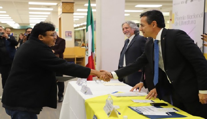El acto tuvo lugar en el Vestíbulo de la Biblioteca Central “Carlos Montemayor”, del Instituto de Ciencias Sociales y Administración (ICSA), donde se congregaron autoridades universitarias, miembros de la comunidad académica y público en general para conocer y aplaudir al galardonado: Ivi May Dzib (Yucatán, 1980).