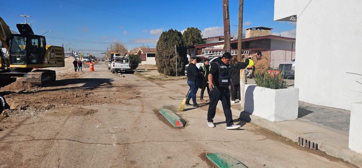 La Junta de Agua y Saneamiento de Juárez trabaja en el recarpeteo que comprende el tramo del acceso a la institución educativa ubicada en la avenida Insurgentes y Plutarco Elías Calles, para que sea abierto a la circulación el próximo domingo.