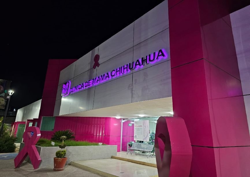 El Instituto Mexicano del Seguro Social (IMSS) en Chihuahua iluminó de rosa sus unidades médicas, hospitalarias y administrativas con motivo del Mes de Sensibilización sobre el Cáncer de Mama.