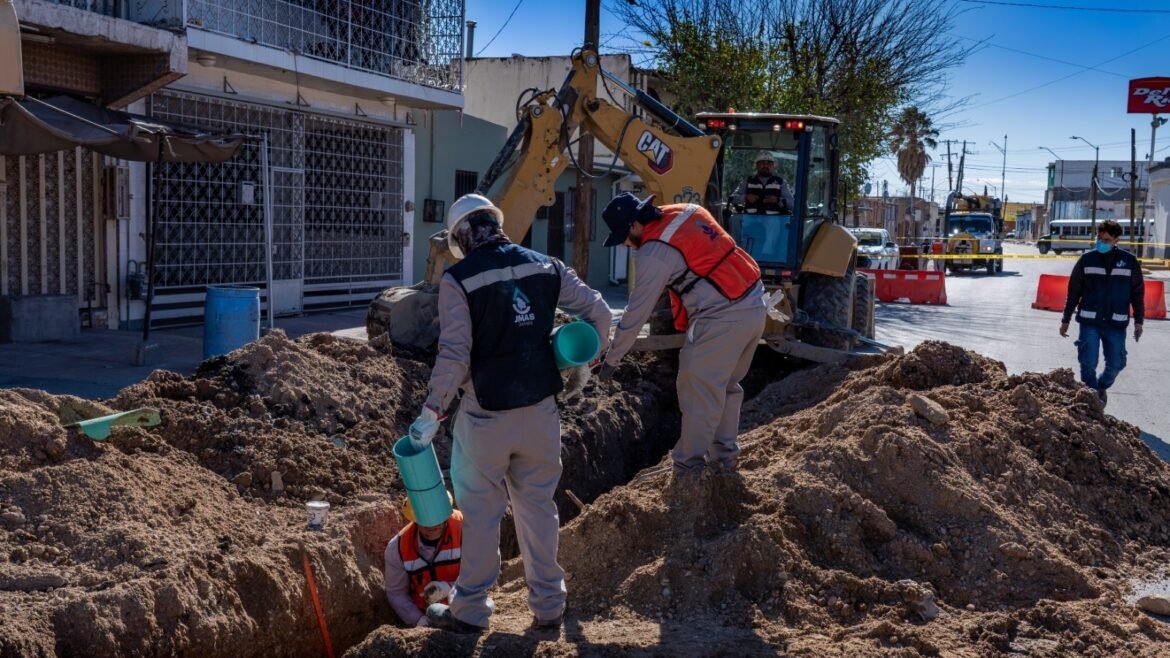 De manera paralela, en esta misma zona la J+ trabaja en la reparación de un hundimiento expuesto en el cruce de las calles 5 de Febrero y Antonio de Otermin, donde se instalan aproximadamente 18 metros de tubería de alcantarillado que ya había cumplido su vida útil.