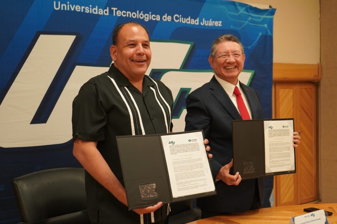 En un esfuerzo por fortalecer la continuidad educativa y ampliar las oportunidades de desarrollo profesional, el Colegio de Educación Profesional Técnica del estado Chihuahua (CONALEP) y la Universidad Tecnológica de Ciudad Juárez (UTCJ) firmaron un convenio de colaboración que facilitará la portabilidad académica de estudiantes de nivel medio superior hacia la educación superior, así como la realización de prácticas profesionales, servicio social, capacitaciones y certificaciones.