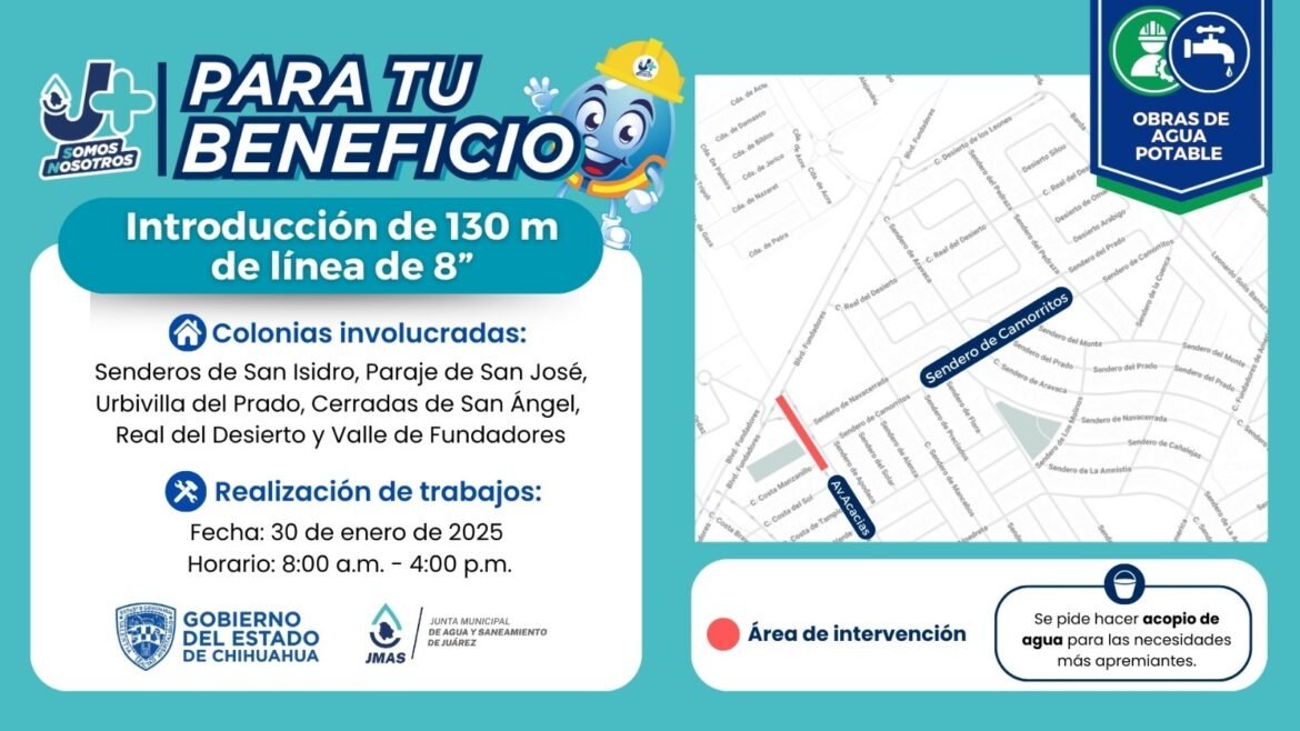 Siguiendo las instrucciones de la gobernadora Maru Campos, quien ha señalado que el agua será su gran legado para Chihuahua, la J+ continúa trabajando para brindar un mejor servicio a los juarenses.