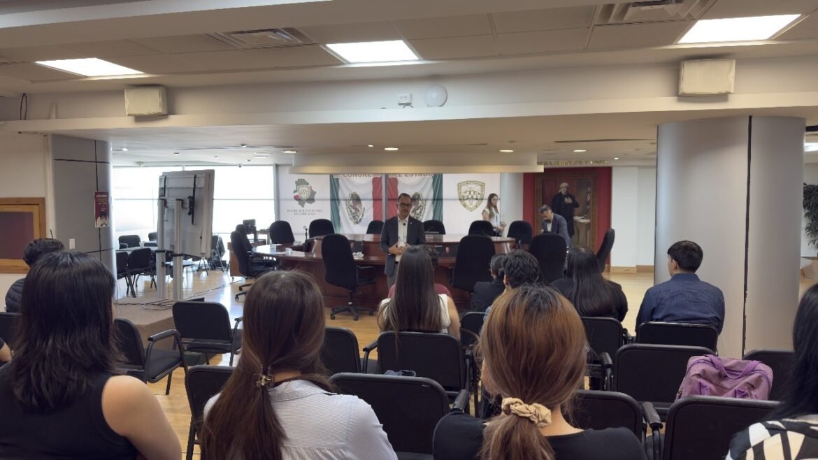 En un encuentro con alumnos de la Facultad de Derecho de la Universidad Autónoma de Chihuahua, el diputado por el Partido Acción Nacional (PAN), Jorge Soto, destacó la importancia de la preparación y la participación informada de los jóvenes en los asuntos públicos, durante su visita al Congreso del Estado.