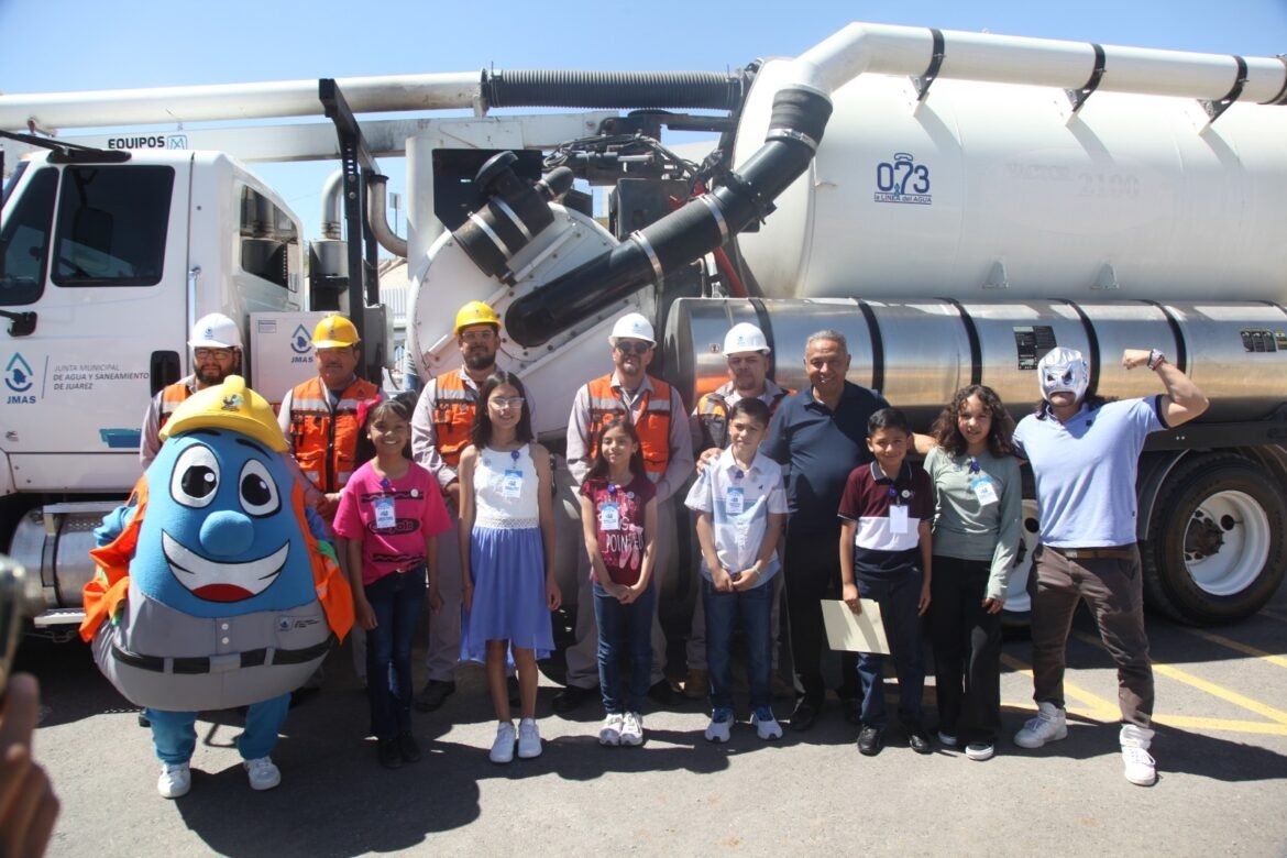 En el marco del Día del Niño, la Junta de Agua y Saneamiento de Juárez realizó un evento educativo y recreativo con ocho niñas y niños de distintas escuelas, quienes resultaron ganadores del concurso “Sé un pequeño director de la J+ 2025”.