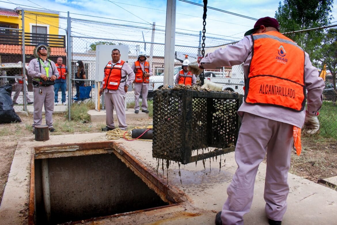 De manera semanal, la Junta de Agua y Saneamiento de Juárez, lleva a cabo trabajos de mantenimiento en los rebombeos de aguas negras, conocidos como RANS, para su buen funcionamiento y prevención de brotes en la red de alcantarillado.