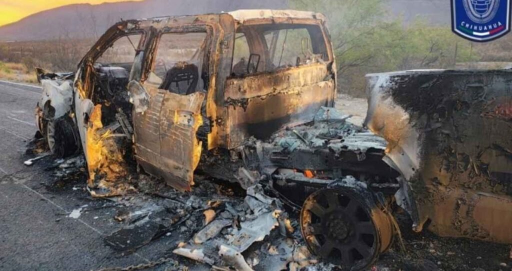 Mientras tanto, en la zona de Aldama, Coyame y Ojinaga, el demonio volvió a soltarse. Bloqueos, enfrentamientos, vehículos incendiados. Uno de los cuerpos fue arrojado en las letras turísticas del municipio, como una macabra postal. No es solo violencia: es una declaración de dominio territorial por parte del crimen.