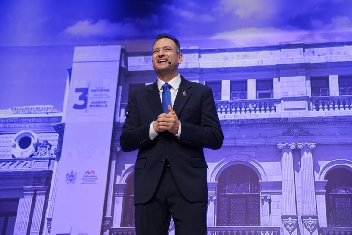 El alcalde de la Capital, Marco Bonilla, concluyó su mandato con el tercer y último informe de actividades en un Teatro de la Ciudad que se acercó al lleno total. El evento, al que asistieron la gobernadora Campos Galván y varios exalcaldes (con la notable ausencia de Carlos Borruel y Marco Quezada, ahora en Morena), se transformó en una crónica de sus tres años al mando, enfocándose en Infraestructura, Gobierno Abierto, Desarrollo Social, Económico y Seguridad Pública.