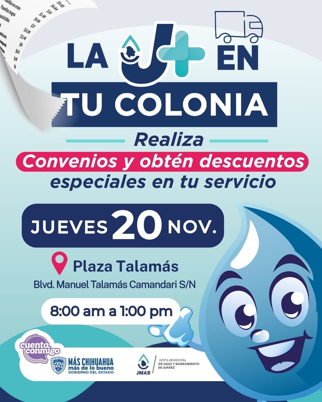 La Junta de Agua y Saneamiento de Juárez, continúa acercando su unidad móvil a las colonias y fraccionamientos, para regularizar cuentas con adeudos.