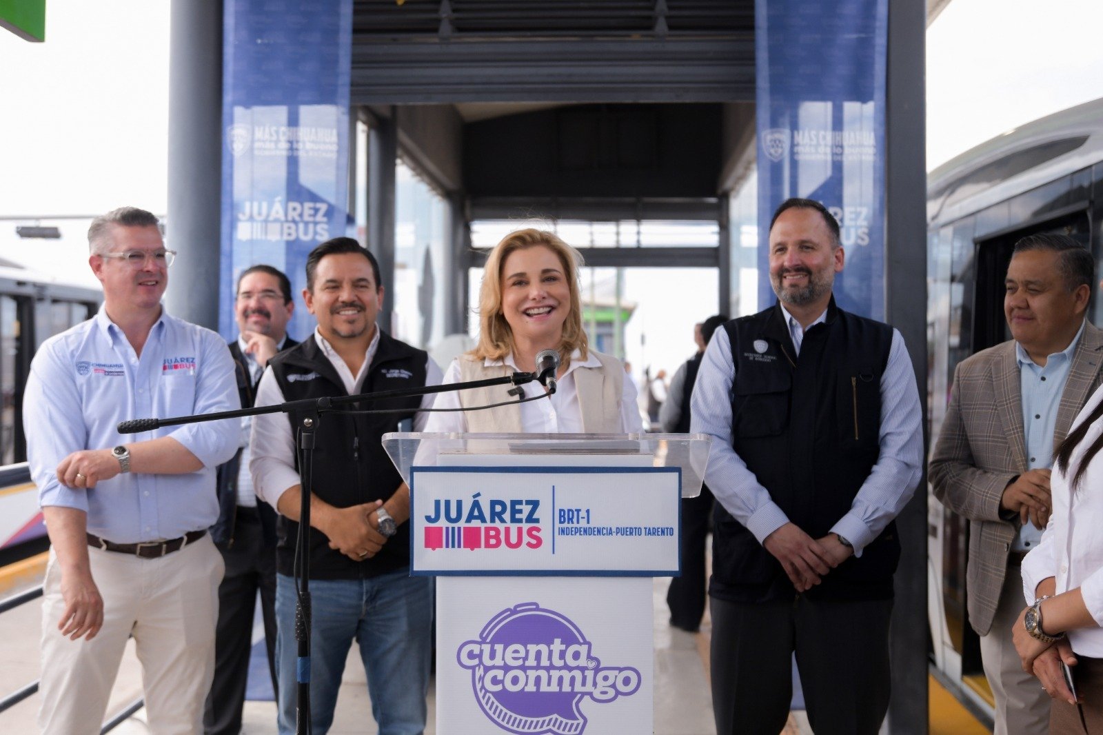 Maru Campos pone en marcha 9 estaciones más del BRT-1 en Ciudad Juárez