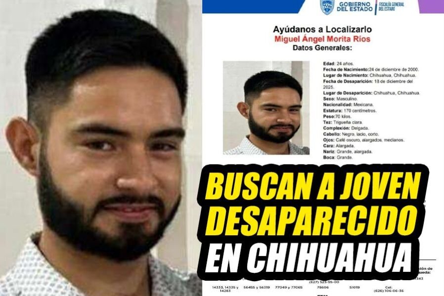 Chihuahua, Chih.- Autoridades solicitaron el apoyo de la ciudadanía para localizar a Miguel Ángel Morita Ríos, de 24 años de edad, quien fue reportado como desaparecido el 18 de diciembre de 2025, en la ciudad de Chihuahua.