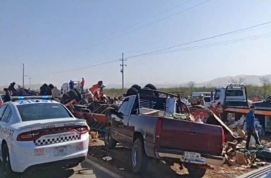 Un accidente carretero registrado en el kilómetro 107 de la carretera Juárez dejó como saldo la volcadura de un tráiler de doble remolque que transportaba cerveza, lo que desató actos de rapiña en la zona.