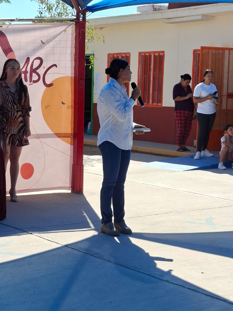 Daphne Patricia Santana Fernández, titular de Salud, saludó a docentes, padres de familia y estudiantes a nombre del alcalde e hizo entrega del material escolar a las y los infantes, quienes recibieron con gusto sus útiles escolares.