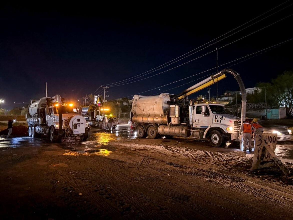 El personal de la Junta de Agua y Saneamiento de Ciudad Juárez llevó a cabo un operativo de limpieza nocturna en las cajas desarenadoras del colector Norzagaray, ubicadas cerca del monumento al Cigarro. Este colector es clave para el sistema de drenaje que sirve a varias colonias del norponiente de la ciudad.
