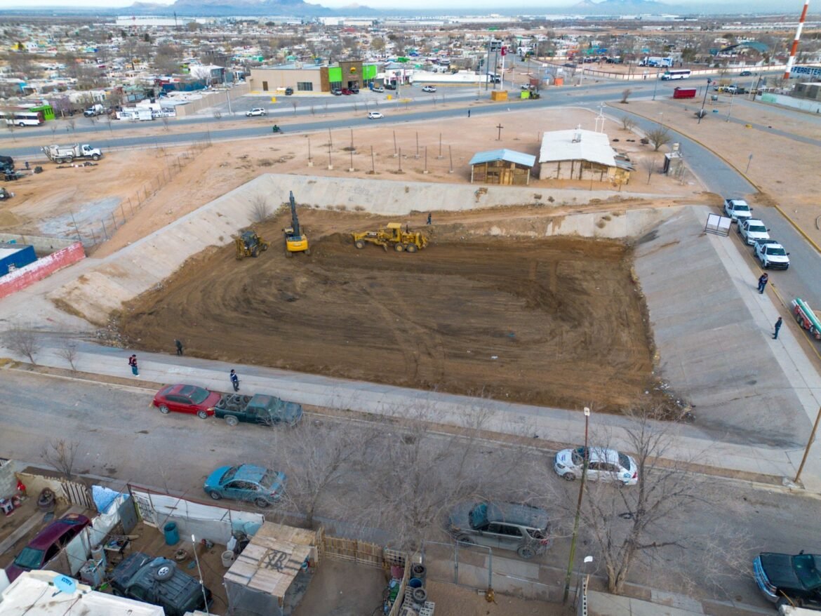 La Junta Municipal de Agua y Saneamiento de Juárez, trabaja en la limpieza de un dique y bacheo de vialidades en el fraccionamiento Parajes de San José, para atender afectaciones ocasionadas por las recientes lluvias y brotes de drenaje.