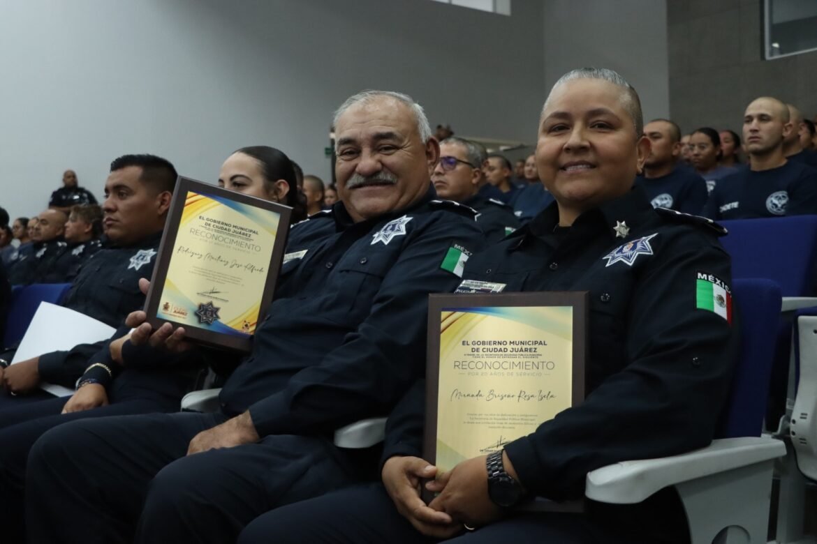 El secretario de Seguridad Pública Municipal, César Omar Muñoz Morales, agradeció el trabajo de los elementos jubilados por dedicar una gran parte de su vida a la corporación, y felicitó a los agentes reconocidos, exhortándolos a continuar trabajando con dedicación y responsabilidad, poniendo de manifiesto su profesionalismo para la protección y bienestar de la comunidad juarense.
