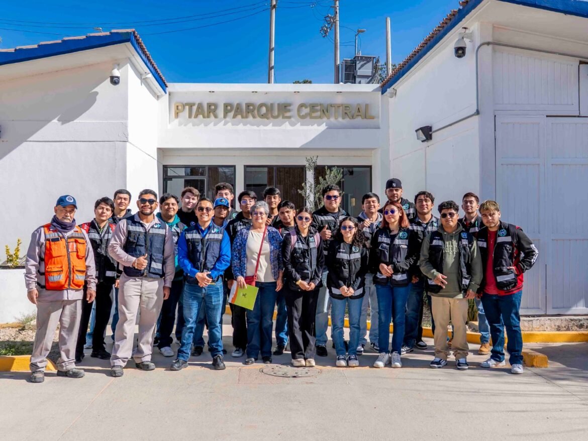 Estudiantes de la Universidad Tecnológica de Ciudad Juárez, realizaron una visita a la Planta Tratadora de Aguas Residuales del Parque Central, donde conocieron el proceso de tratamiento del agua en la ciudad.
