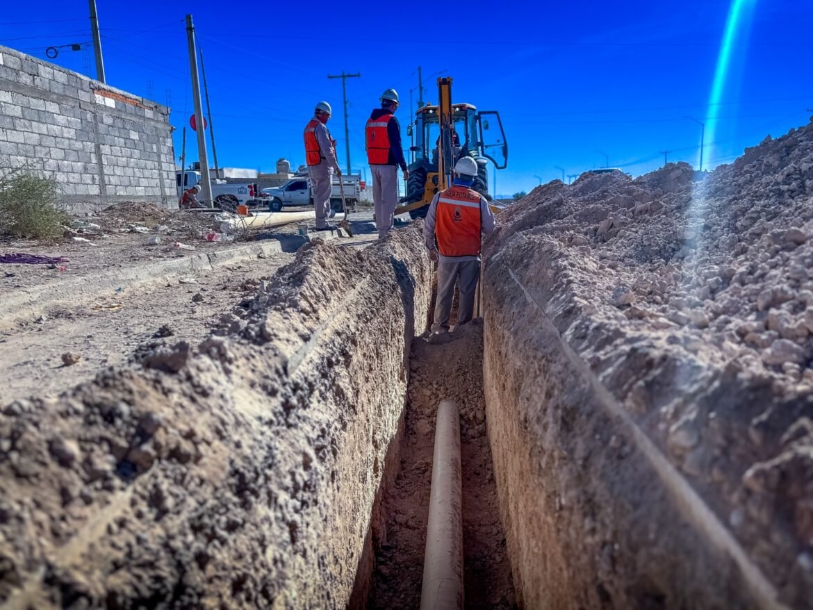 Con el objetivo de mejorar la presión de agua potable en las colonias Senderos de San Isidro y Urbi Villa del Prado, la Junta de Agua y Saneamiento de Juárez, realiza trabajos de instalación de nueva tubería para su conexión a una línea de conducción de 12 pulgadas.