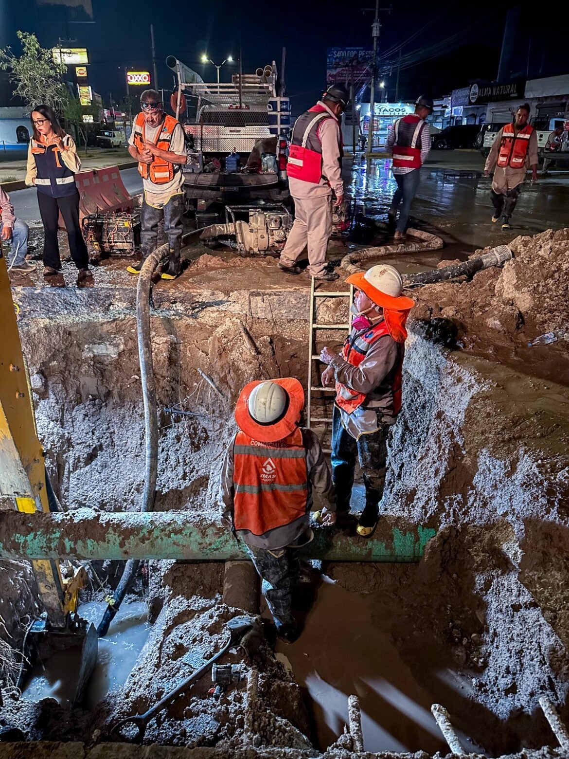 Las acciones de las cuadrillas del departamento de agua potable se extendieron hasta las 12 de la noche de este miércoles, para instalar un carrete de 10 pulgadas para resolver la fuga, sin que se registrara suspensión en el suministro de agua potable en la zona.