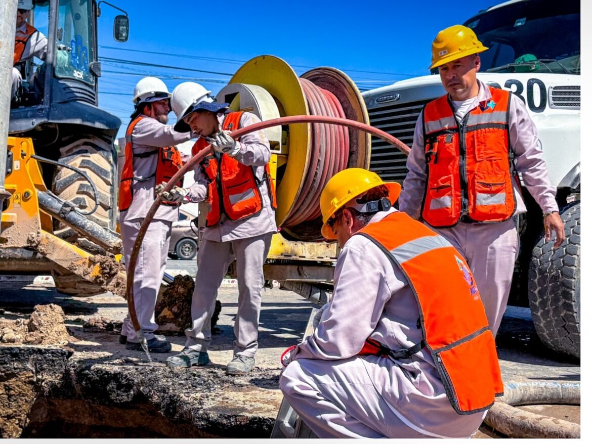 La Junta de Agua y Saneamiento de Ciudad Juárez (J+) atendió de manera inmediata la emergencia de fuga de agua potable ubicada en el Bulevar Gómez Morín, por ser una vialidad con alto tráfico vehicular personal especializado con maquinaria pesada trabaja a marchas forzadas para reparar esta fuga.