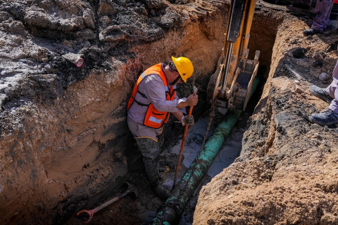 Cuadrillas del departamento de Alcantarillado laboraron por más de seis horas en el cruce de las calles Oro y María Martínez, donde fue necesaria una excavación a dos metros de profundidad, utilizando maquinaria especializada, como una retroexcavadora, un camión de inyección y succión (Vactor) y un camión de volteo, informó el ingeniero Iván Gaytán, coordinador del distrito 3 de Alcantarillado.