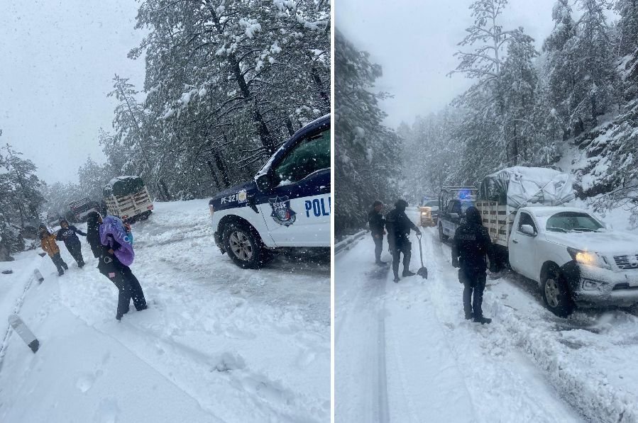 El hecho ocurrió durante la mañana de este 24 de enero, sobre la carretera que comunica de Hidalgo del Parral hacia Guadalupe y Calvo, cuando los agentes estatales detectaron una camioneta que se encontraba a un costado del camino sin posibilidad de avanzar, debido a la acumulación de nieve en la zona.