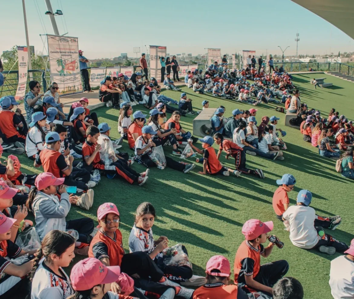 Con una malla sombra velaria de 908.78 metros cuadrados, diseñada con una innovadora estructura de cinco puntas (tres altas y dos bajas), este recinto ofrece una doble curvatura inversa que maximiza la sombra y la comodidad de sus asistentes.