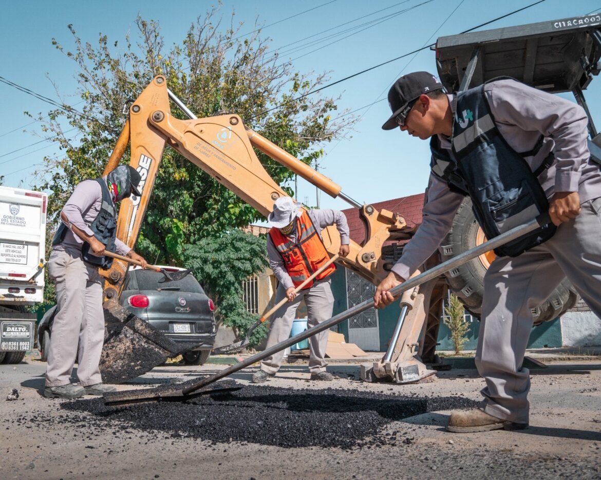 Cuadrillas reparan más de mil 100 baches, zanjas y banquetas, mientras se realizan visitas casa por casa.